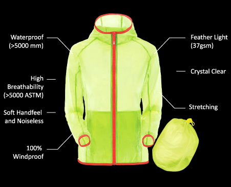 專為機踏車外套開發的具透視性/超輕重量/四面彈性的防風透溼機能性布料 (a feather light, crystal clear and stretch fabric for cycling jacket)