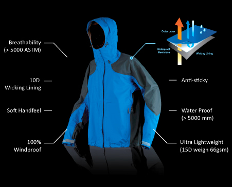 (AN ULTRA LIGHT WEIGHT 3 LAYERS FUNCTIONAL FABRIC)