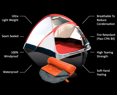 適合應用於帳篷、睡袋...等。