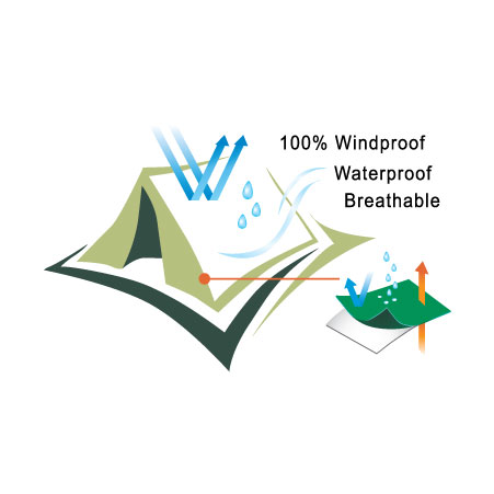 VENTWALLl 是設計來克服帳蓬內凝結水滴的問題。它有非常高的透溼性7000 g/m2/24hrs(ASTM E96),可快速排出帳蓬內的水氣。